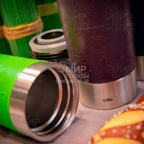 Термокружка от Cilio изготовлена из ударопрочной нержавеющей стали. Имеет нескользящее основание и двойные стенки, благодаря чему сохраняет ваши напитки горячими до 4 часов или холодными до 8 часов. Рельефная силиконовая вставка позволяет держать кружку даже с кипятком. Крышка герметична и легко открывается одним нажатием кнопки. Ее можно разобрать для облегчения чистки. Практический и полезный атрибут активного человека при прогулках и выездах на природу.