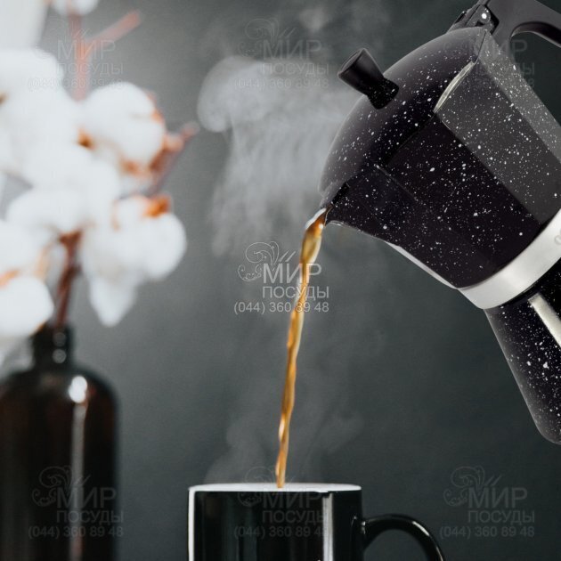 Мир посуды - Кухонная посуда - Кофеварки и турки - Гейзерные кофеварки - Гейзерная кофеварка на 12 чашек черный мрамор 600мл OF-101107