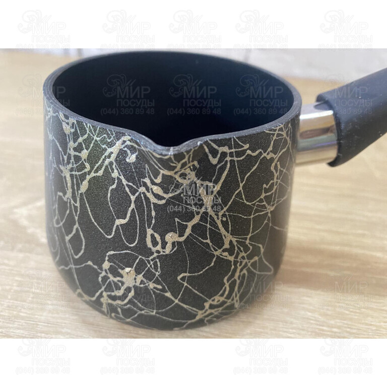 Турка серии Black Mars от украинского бренда Ardesto изготовлена из алюминия. Оснащена антипригарным гранитным покрытием и бакелитовой ручкой. Нельзя мыть в посудомоечной машине.