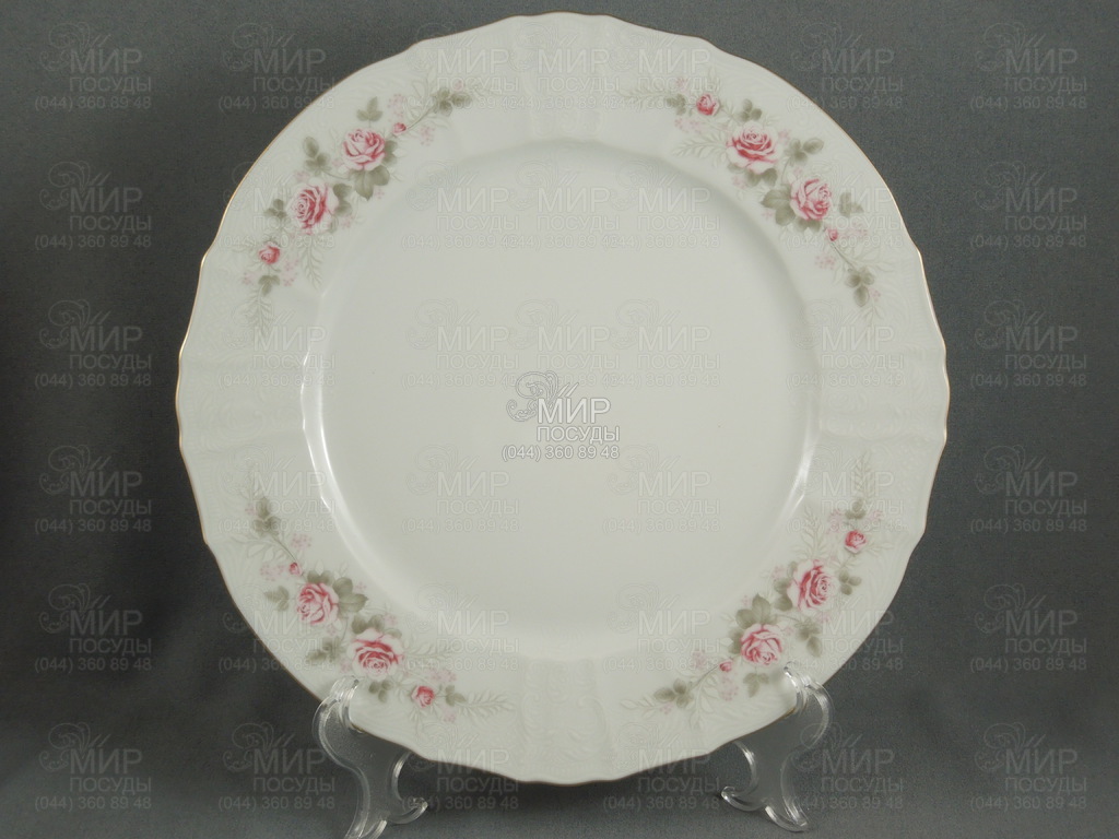 Тарелка для торта Bernadotte Бледные розы с золотой каймой 27см