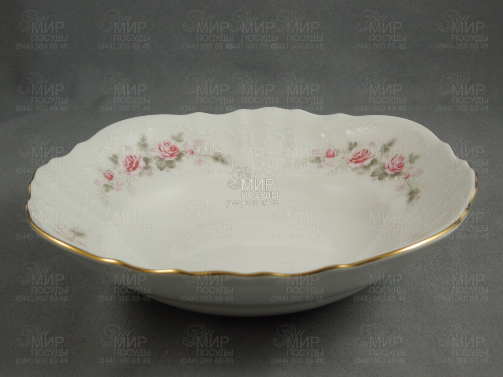 Блюдо овальное Bernadotte Бледные розы с золотой каймой 24см
