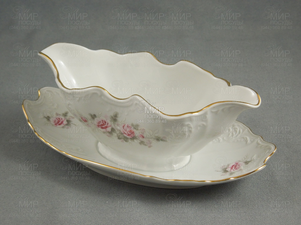 Соусник овальный Bernadotte Бледные розы с золотой каймой 500мл