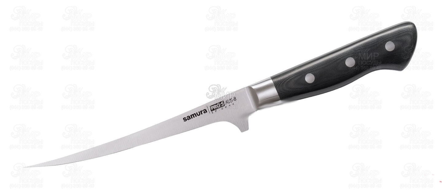 Удобный филейный нож с тонким и гибким лезвием необходим при разделки курицы, рыбы, для отделения филе от костей. Японская нержавеющая cталь AUS-8, из которой изготовлен нож, обладает хорошей коррозионной устойчивостью, отличной стойкостью режущей кромки, легко полируется и шлифуется. Рукоять ножа, выполненная из влаго- и термостойкого материала G10, удобно лежит в руке, не скользит и устойчива к агрессивным средам. Samura "Pro-S" - это удобные и практичные ножи современного дизайна, которые станут истинным украшением на любой кухне.