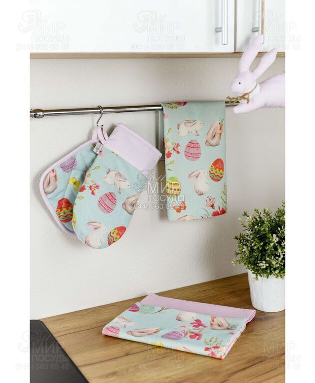 Мир посуды - Кухонные аксессуары - Рукавицы, прихватки, фартуки - Набор прихваток Писанка голубая 4823093443945