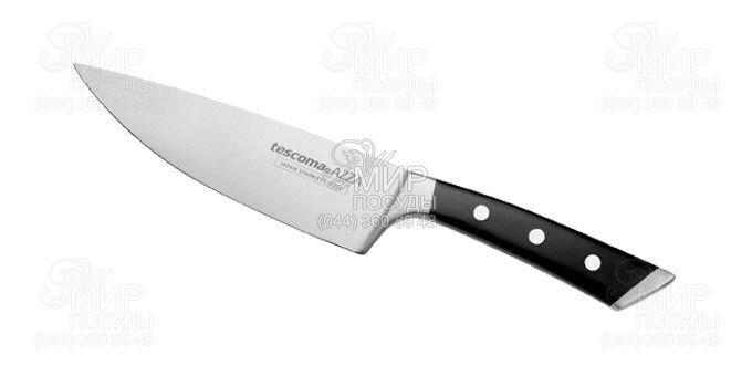 Нож Azza от чешского производителя Tescoma выкован из цельного куска первоклассной нержавеющей японской стали твердости HRC 55-57. Лезвие сформированное и заточенное вручную для идеального эффекта при использовании. Эргономичная ручка с массивными металлическими заклепками. Нож высшего качества для профессионального и домашнего использования.