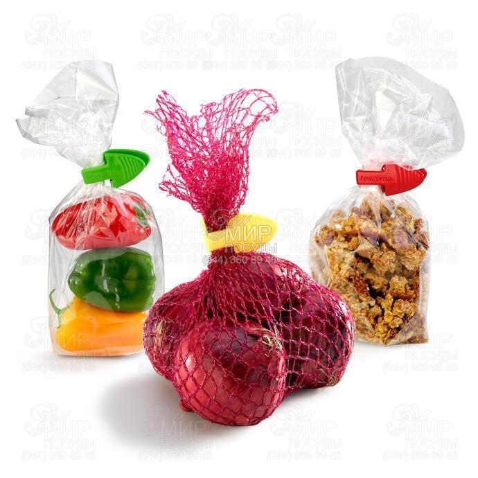 Набор зажимов Presto от чешского производителя Tescoma отлично подходит для легкого закрывания пластиковых пакетов при хранении продуктов. Закрутите открытый конец пакета и прикрепите зажим.