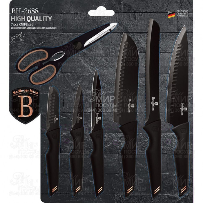 Набор ножей Berlinger Haus станет желанным обновлением на кухне, так как не только практичный и долговечный, но и эстетичный. Стильное оформление комплекта позволяет использовать его в качестве подарка. Разработаны изделия из нержавеющей и износостойкой стали. Она экологически чистая и безопасная для здоровья. Рукоятки выполнены из полипропилена, который не скользит и приятен на ощупь.