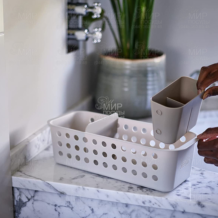 Органайзер Easy Store от Joseph Joseph сохраняет различные товары первой необходимости для ванной комнаты. Глубокие вентилируемые боковины для хорошей циркуляции воздуха. Передвижной поднос для мелких предметов. Идеально подходит для организации на полках или в ящиках. Разбирается для удобства чистки.