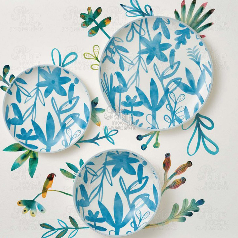 Пышная флора, изображениями которой щедро украшены предметы новой коллекции Dusk от Maxwell & Williams скрывает много сюрпризов. В переплетении листьев не сразу удается рассмотреть сидящих на ветвях птиц. Используя всего два цвета и лаконичность как художественный прием, художник вроде бы предлагает дополнить другое с помощью воображения. Декор, выполненный в голубой и бежевой гамме, создает спокойную и гармоничную атмосферу для приятных застолий.