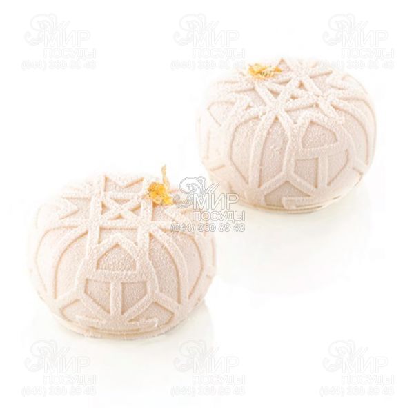 Форма вдохновлена восточной архитектурой, с оригинальным декором, выполненным тонкими линиями. Единичные порции, изготовленные с помощью формы Mistery95, идеально подойдут к бархатному декору.