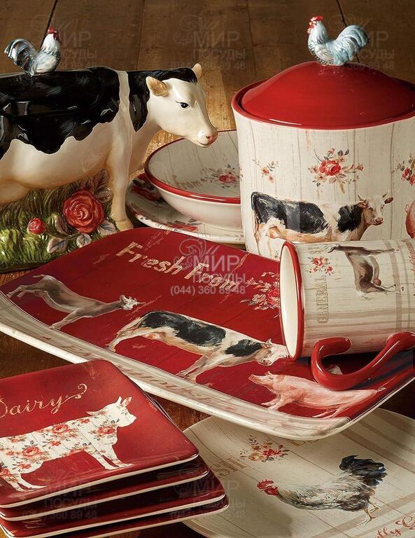 Бисквитник Ферма Коровка с коричневым петухом 27х29х14см...