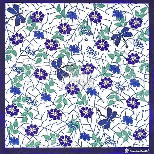 Салфетки бумажные Стрекоза от польского производителя Керамика Артистична изготовлены из бумаги. Декорированы ярким густым цветочным орнаментом в ультрамариновой цветовой гамме с летящей стрекозой.