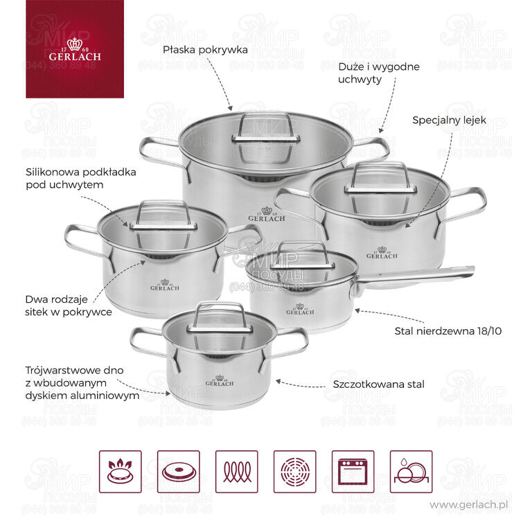 Кастрюля Ambiente от польского производителя Gerlach это уникальный и инновационный продукт. Ее отличает изысканный стиль и высокая функциональность, которая порадует каждого любителя кулинарии. Кастрюля с толстым трехслойным дном, изготовленная из нержавеющей стали 18/10, имеет специальную функцию сцеживания, что делает ее незаменимым решением на кухне. Линия Ambiente – это надежность, уникальный минималистичный дизайн и удовольствие от приготовления пищи. Трехслойное дно со встроенным алюминиевым диском обеспечивает превосходное распределение и сохранение тепла. Более того, это позволяет использовать посуду на всех типах плит: электрических, газовых, керамических и индукционных. Кастрюля также подходит для использования в духовке при температуре до 180°С. Температура выше 180°C может привести к изменению цвета посуды. Крышка из закаленного стекла обеспечивает идеальное прилегание к краю сосуда. Тепло и вода с питательными веществами сохраняются внутри. Вентиляционные отверстия регулируют уровень водяного пара, что повышает качество приготовления. Большие и удобные ручки разработаны таким образом, чтобы обеспечить максимальный комфорт при перемешивании продуктов и поднятии тяжелой посуды или горячей крышки. Под ручкой крышки имеется силиконовая накладка, предотвращающая перегрев.