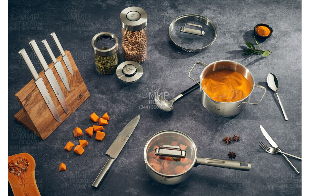 Кастрюля Ambiente от польского производителя Gerlach это уникальный и инновационный продукт. Ее отличает изысканный стиль и высокая функциональность, которая порадует каждого любителя кулинарии. Кастрюля с толстым трехслойным дном, изготовленная из нержавеющей стали 18/10, имеет специальную функцию сцеживания, что делает ее незаменимым решением на кухне. Линия Ambiente – это надежность, уникальный минималистичный дизайн и удовольствие от приготовления пищи. Трехслойное дно со встроенным алюминиевым диском обеспечивает превосходное распределение и сохранение тепла. Более того, это позволяет использовать посуду на всех типах плит: электрических, газовых, керамических и индукционных. Кастрюля также подходит для использования в духовке при температуре до 180°С. Температура выше 180°C может привести к изменению цвета посуды. Крышка из закаленного стекла обеспечивает идеальное прилегание к краю сосуда. Тепло и вода с питательными веществами сохраняются внутри. Вентиляционные отверстия регулируют уровень водяного пара, что повышает качество приготовления. Большие и удобные ручки разработаны таким образом, чтобы обеспечить максимальный комфорт при перемешивании продуктов и поднятии тяжелой посуды или горячей крышки. Под ручкой крышки имеется силиконовая накладка, предотвращающая перегрев.