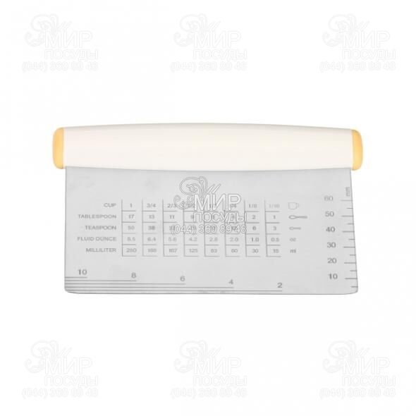 Нож для теста от чешского производителя Tescoma изготовлен из нержавеющей стали. Предназначен для легкой и быстрой нарезки теста. Твердое лезвие из нержавеющей стали точно измеряет длину, ширину и толщину. С таблицей для преобразования объема чашки, ложки и чайной ложки в миллилитрах и унциях.