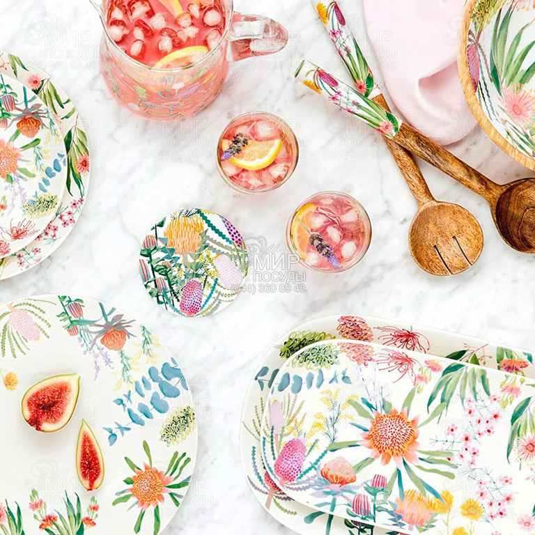 Коллекция Royal Botanic Gardens Native Blooms появилась под впечатлением от Ботанического сада в Сиднее. Уже многие годы дизайн и благоустройство этого парка не оставляют равнодушными тысячи посетителей. Дизайнеры коллекции постарались передать свежесть австралийской зелени, хрупкость, нежность и недолговечность цветов. Щедро декорированные тарелки, миски и чашки привнесут в ваш дом новые цветочные мотивы, которые будут радовать вас независимо от погоды за окном, напоминая о весне.