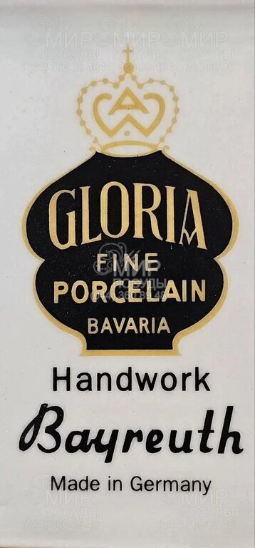 Фарфоровая мануфактура Gloria fine porcelain Bavaria Handwork Bayreuth Made in Germany – мастерская ручная работа и отличное качество. Проверенные и надежные дизайны все еще являются частью коллекции, но добавляются новые и многообещающие элементы. Искусная ручная работа – отличное качество – годы традиций – современные идеи и любовь к деталям. Это движущие силы повседневной работы Gloria с 1920 года основания компании. Подлинными ценностями являются отличное качество продукции, изготовленное на основе многолетнего опыта и традиций. Gloria porcelan использует золото наивысшей пробы 24 карата или платину – в процессе используются только самые лучшие материалы. Фарфоровая посуда – символ изобилия и комфорта. Такая посуда не потеряла своей актуальности и сегодня.