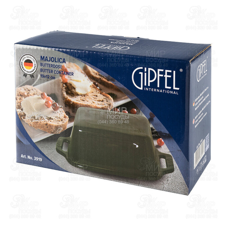 Масленка Majolica от Gipfel изготовлена из натурального материала - керамики, которая есть абсолютно безопасной для здоровья и способна служить на протяжении долгих лет. Крышка плотно закрывает масленку, благодаря чему масло будет хранится долго и надежно.