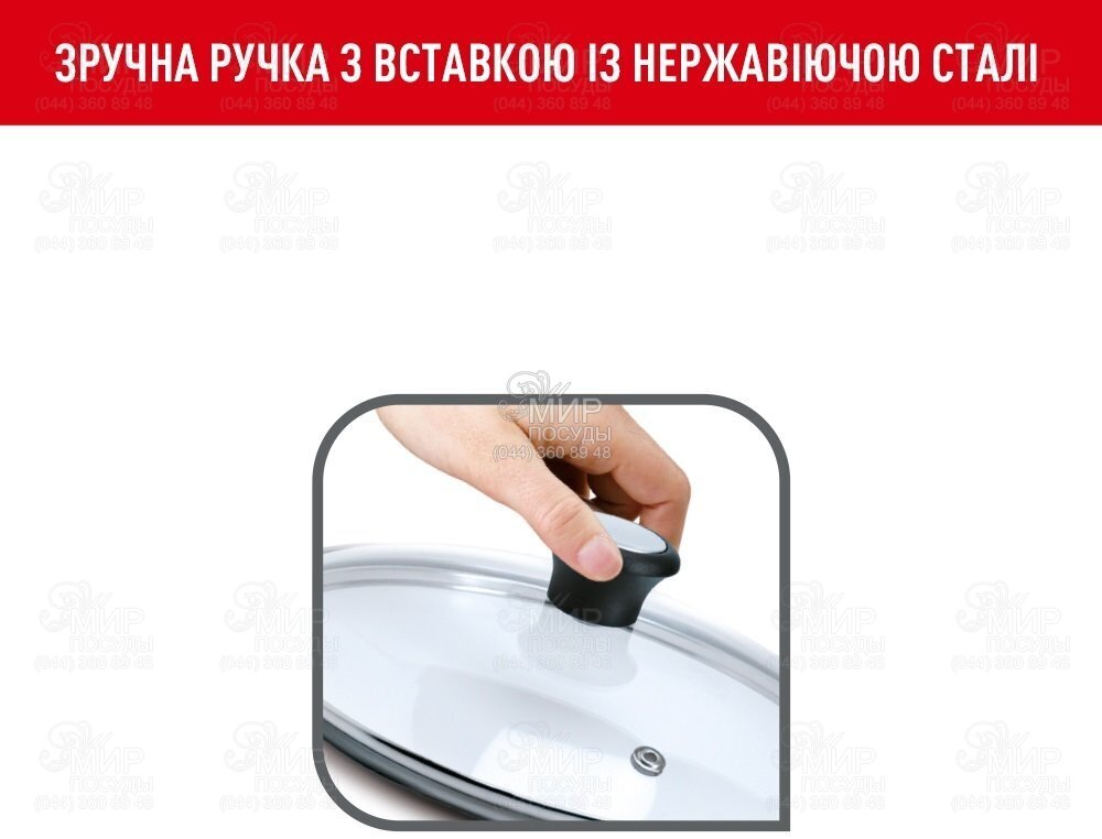 Крышка от Tefal изготовлена из жаропрочного стекла. Оснащена эргономичной бакелитовой ручкой и отверстием для выпуска пара. Практичная модель подойдет к любой емкости с нужным диаметром.
