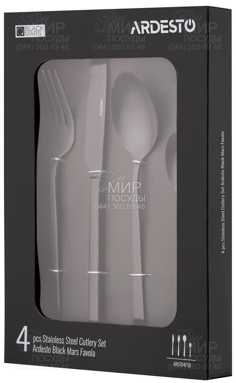 Столовые приборы Black Mars Favola от Ardesto – важные элементы сервировки стола как для ежедневного использования, так и для праздников. Удобные изделия изготовлены из нержавеющей стали, отличающейся прочностью, гигиеничностью и коррозионной стойкостью. Приборы имеют стильный дизайн и эргономичную форму.