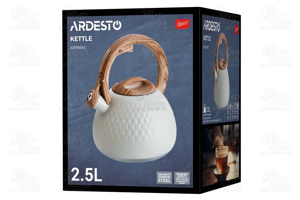 Чайник серии Gemini от украинского бренда Ardesto изготовлен из нержавеющей стали. Наружная часть чайника обладает ярким покрытием, а носик оборудован свистком. Нейлоновая ручка с покрытием Soft-touch обеспечивает удобство и комфорт при использовании.