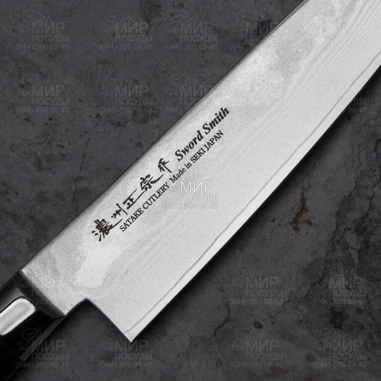 Японский нож Damascus от Satake изготовлен из дамасской стали и черной рукояткой в особом дизайнерском исполнении. Технически ножи выполнены безупречно, на основе старинных японских традиций изготовления мечей, с усовершенствованными тенденциями сегодняшнего дня. Безопасные и легкие в работе ножи от Satake долгое время держат заточку, удобны в работе и покорили сердца тысяч настоящих профессионалов и любителей кулинарного искусства.