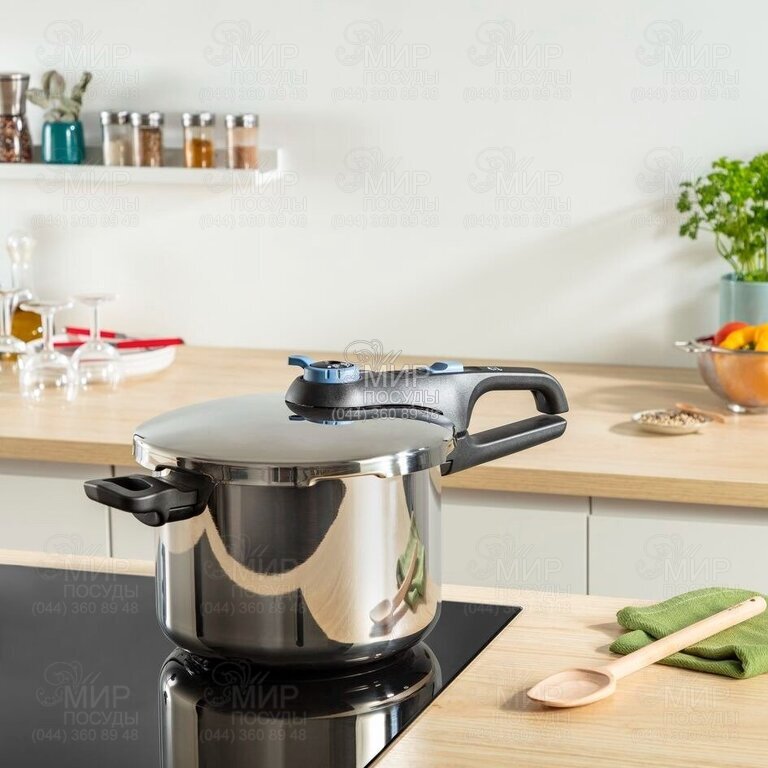 Скороварка Secure Trendy от Tefal станет идеальным дополнением вашей кухни. Благодаря современному стильному дизайну скороварка идеально впишется в дизайн любой кухни. Готовьте вкусные блюда вдвое быстрее с помощью крышки для приготовления под давлением. Два специальных режима оптимизируют температуру приготовления и сохраняют питательные вещества. Режим "Овощи" сохраняет до 80% витамина С в овощах, а режим "Мясо" готовит мясо быстрее. Благодаря тщательно продуманным функциям безопасности вы можете быть спокойны во время приготовления пищи. Скороварка может приступить к экспресс-приготовлению только тогда, когда крышка закрыта. Клапан регулирует давление, если выпускное отверстие для пара засоряется, в действие вступает предохранительный клапан, за которым в конце концов следует деформация прокладки, гарантирующая безопасность. Наконец, ручку можно использовать только тогда, когда скороварка не находится под давлением.