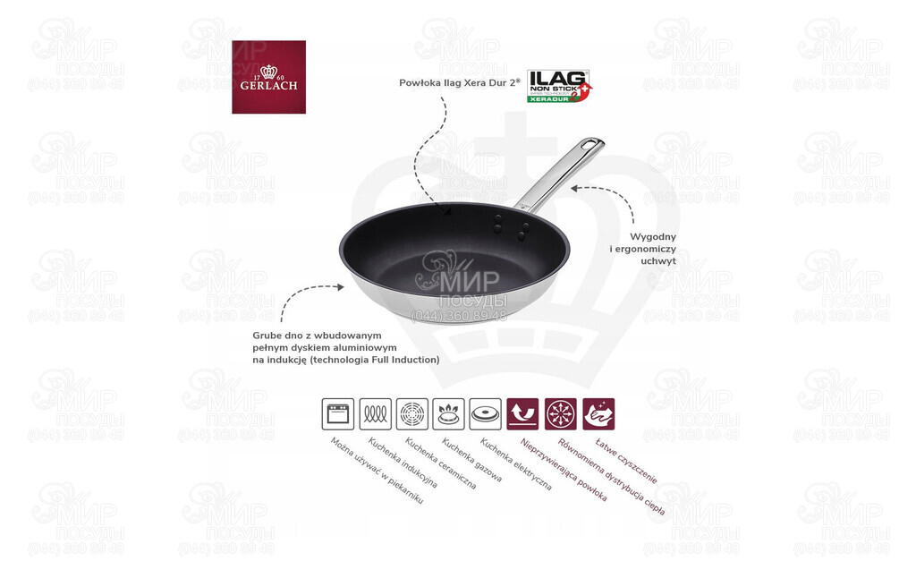 Сковороды из линейки Solid от польского производителя Gerlach имеют двухслойное антипригарное покрытие Ilag Xera Dur 2® Ceramic Non Stick. Обладают двумя слоями: верхний слой из ксерогеля с металлическим эффектом и базовый слой, армированный керамикой с ксерогелем для предотвращения растрескивания. Сосуд устойчив к очень высоким температурам, истиранию, царапинам и деформации. Он изготовлен из проверенных материалов, безопасных для здоровья. Кроме того, чрезвычайно гладкое и плотное керамическое покрытие ILAG легко содержать в чистоте. Толстое стальное дно обеспечивает равномерное распределение тепла, что повышает эффективность приготовления и позволяет жарить быстрее и экономнее. Благодаря встроенному полностью алюминиевому диску для индукции (технология Full Induction) сковорода Solid прекрасно использует потенциал индукционных плит, обеспечивая более быстрое приготовление блюд. Более того, продукт пригоден и для использования на других видах плит: газовых, электрических и керамических, а также в духовке. Удобная и эргономичная ручка не нагревается и гарантирует комфорт использования при жарке при высоких температурах.