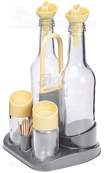 Набор для специй от турецкого производителя Herevin - это практичный комплект, изготовленный из высококачественного стекла, крышки изготовлены из пластика. 2 бутылки и 2 спецовщицы идеально подходят для хранения уксуса, масла и любимых специй.