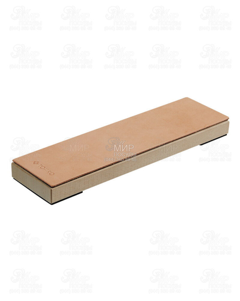 Кожаный брусок Tojiro с нескользящим деревянным основанием для тонкой заточки ножей после заточки с целью получения еще большей остроты или полировки режущей кромки. Также идеально подходит для нанесения мелкозернистой полировальной пасты.