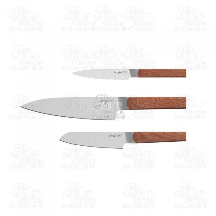 Ножи от бельгийского производителя BergHOFF изготовлены из нержавеющей стали. Оснащены эргономичными ручками из светлого дерева. Данные инструменты отлично подходят как для профессионального, так и для домашнего использования. Рекомендовано мыть вручную.