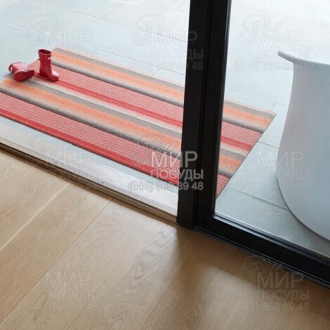 Коврик от американского производителя Chilewich имеет фактурный «петлевой» вид, а затем соединяется с прочной виниловой основой. Красивое и функциональное изделие идеально подходит для использования как внутри помещения, так и за его пределами. Благодаря высококачественным материалам изготовления коврик не скользит по поверхности, устойчив к плесени, не пропускает воду и легко чистится.