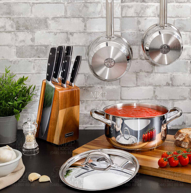 Крышка Chef Line от итальянского производителя Barazzoni изготовлена из высококачественной нержавеющей стали. Этот материал также имеет стойкость к коррозии и сохраняет свой первоначальный вид даже при частом использовании. Ручка крышки также изготовлена из нержавеющей стали, что не только придает ей стильный внешний вид, но и обеспечивает удобство в использовании. Она сохраняет тепло и влагу, что помогает сохранить вкус и аромат блюд, а благодаря своим качественным материалам и дизайну, она станет надежным помощником на кухне и придаст стильный акцент вашей посуде.