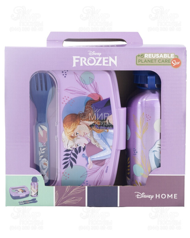 Мир посуды - Кухонная посуда - Емкости для продуктов - Ланч-боксы - Ланч-бокс с бутылкой для воды и столовыми приборами Frozen 22х17х7,5см 74263