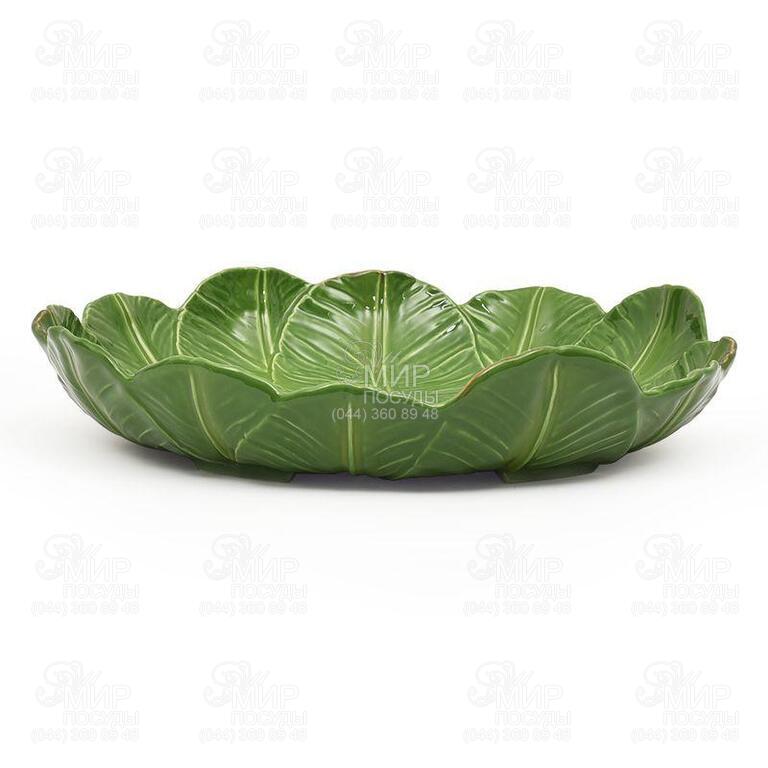 Фруктовница от португальского производителя Bordallo изготовлена из прочной керамики. Емкость не требует специального ухода, яркие краски не потускнеют от регулярного мытья в посудомоечной машине. Изделие с тропическим акцентом предназначено для подачи овощного или фруктового пирога. Банановая листва придаст праздничному столу эффект свежести и экзотики.
