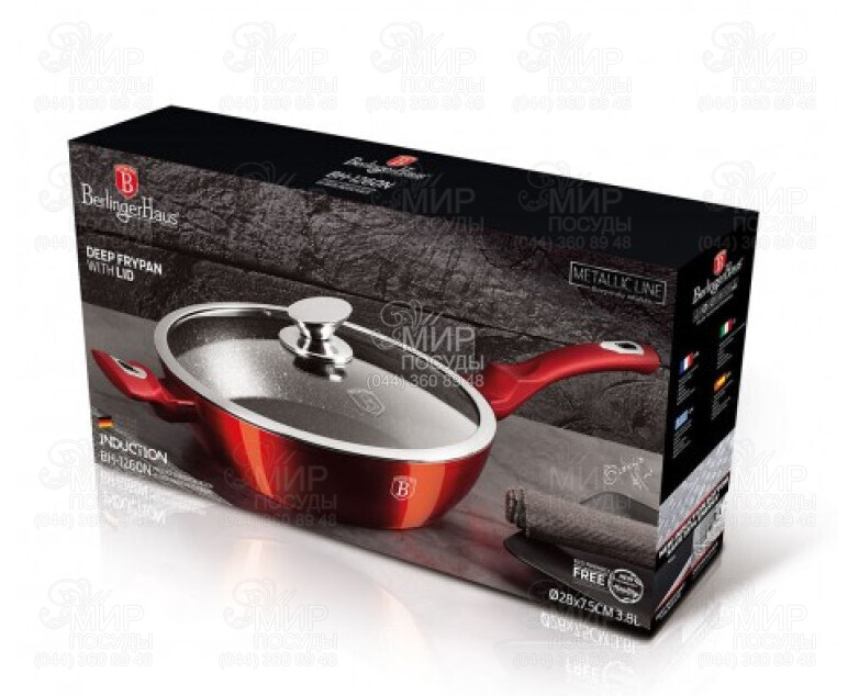 Мир посуды - Кухонная посуда - Сковородки - Сковородки - Сковорода глубокая с крышкой Metallic Burgundy Edition 28см BH-1260N