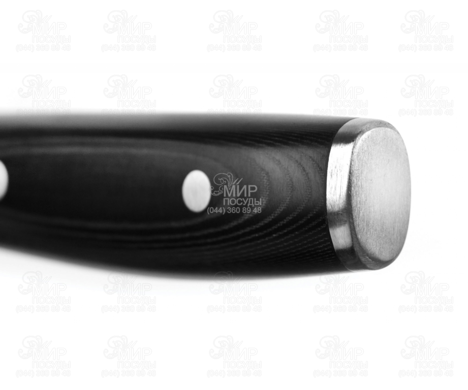 Рукоять на ножах этой серии выполнена из микарты — чрезвычайно прочного материала, который абсолютно не взаимодействует с водой и не насыщается запахами продуктов питания.