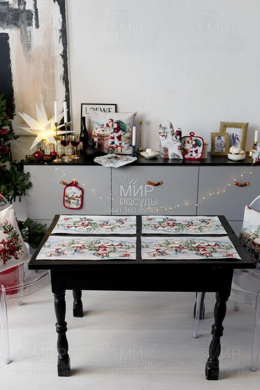Мир посуды - Домашний интерьер - Коврики и салфетки для сервировки - Сервировочные салфетки - Салфетка сервировочная с велюром Снежная зима 30х50см 4823093464896