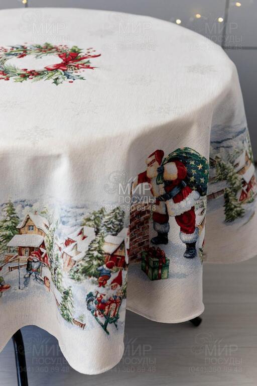 Скатерть с велюром Снежная зима 136см 4823093465008