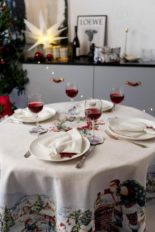 Мир посуды - Домашний интерьер - Домашний текстиль - Скатерти - Скатерть с велюром Снежная зима 180см 4823093465015
