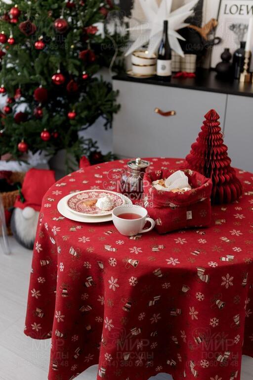 Мир посуды - Домашний интерьер - Домашний текстиль - Скатерти - Скатерть с люрексом Колокольчики на красном 180см 4823093465879