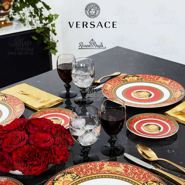 В центре роскошной коллекции Medusa от Rosenthal Versace находится культовый символ бренда: голова Медузы. Голова этой женщины со змеиными волосами, часто встречающаяся у Versace, изначально происходит из греческой мифологии. Выразительные красный и черный цвета вместе с блестящим золотом образуют основу золотой головы Медузы на тарелках, чашках и других предметах. Изображения характеризуются роскошью в стиле барокко, типичной для многих моделей Дома Versace. Дизайн центральных предметов также отражает роскошный образ жизни мира Versace: чашки доступны либо с круглой ручкой, либо с золотым крылом Икара в качестве ручки. Ручка крышки маленького чайника выполнена в виде кнопки, а на других полых частях, таких как кофейник или сахарница, в виде горизонтального крыла.