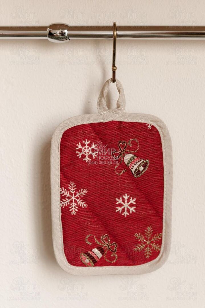 Мир посуды - Кухонные аксессуары - Рукавицы, прихватки, фартуки - Прихватка с люрексом Колокольчики на красном 20х15см 4823093467088