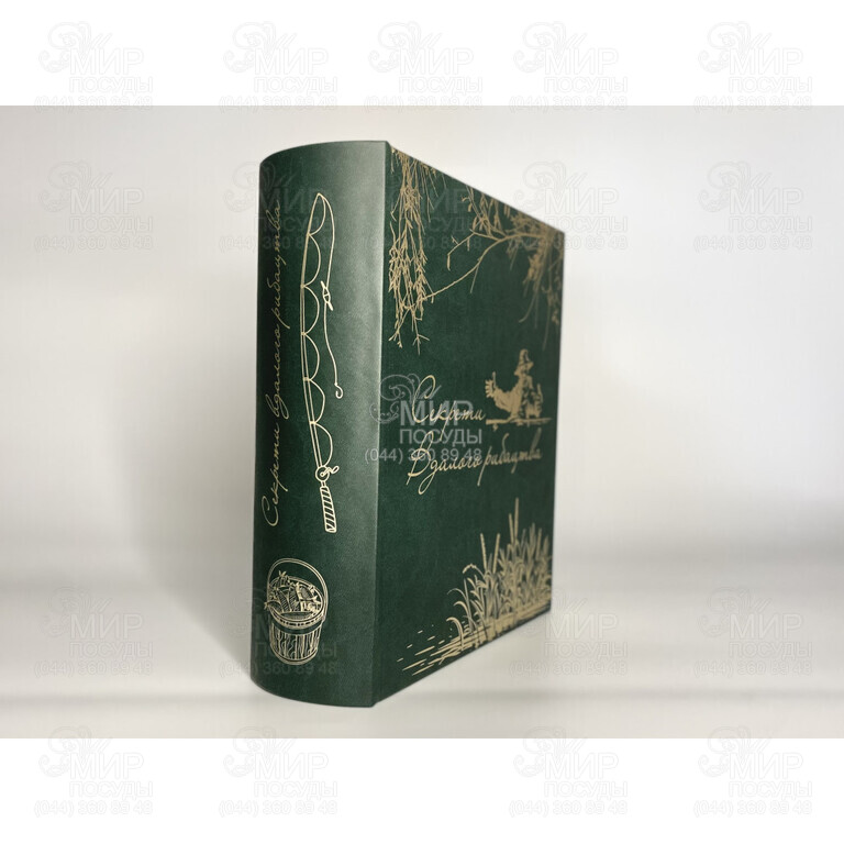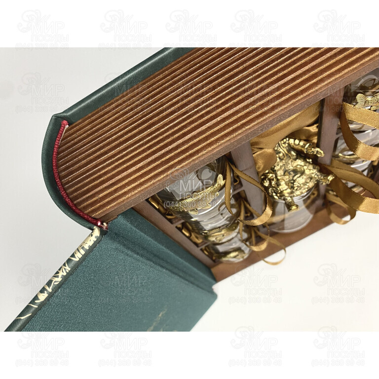 Подарочный набор Книга-Бар – оригинальное решение приятно удивить человека, увлеченного рыболовством. Внутри расположены 6 рюмок и 1 штрафная рюмка для водки с гладкой поверхностью и идеально сверкающих на свете, декорированных объемными накладками пищевого олова. Накладки покрыты серебром 999 пробы по немецкой технологии, что защищает их от тускнения и сохраняет привлекательный внешний вид после долгого времени использования.