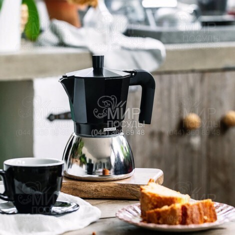 Мир посуды - Кухонная посуда - Кофеварки и турки - Гейзерные кофеварки - Гейзерная кофеварка на 9 чашек Induction Inox black 470мл M863009
