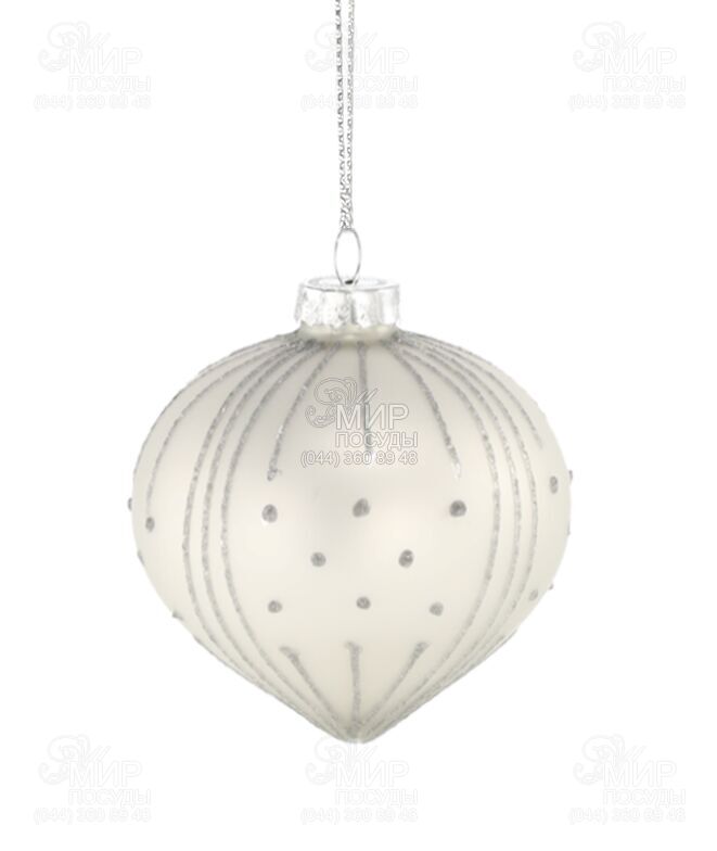 Стеклянный белый шарик от польского бренда Chomik станет стильным дополнением в украшении новогоднего дерева, а также удачно скомбинируется с другими цветовыми гаммами. Нежный стиль украшения, матовая поверхность и серебристый узор из блесток придают изделию оригинальность и своеобразный шарм. А приобретя несколько единиц данного товара, можно создать привлекательную акцентную композицию на новогоднем дереве.