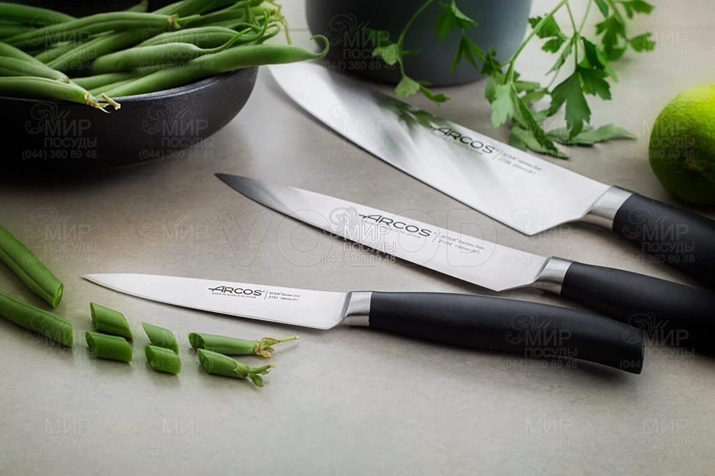 Набор ножей Clara от Arcos разработан для профессионального и домашнего использования. Лезвие изготовили из эксклюзивной нержавеющей стали NITRUM, обладающей сверхвысокой режущей способностью, повышенной твердостью и коррозостойкостью. В результате лезвие долго не затупляется, не ржавеет, поэтому изделие имеет долгий срок службы, обеспечивая экономическую эффективность инвентаря. Рукоятка идеальна для интенсивного использования благодаря эргономичной форме с утолщением посередине. Комфортный захват рукоятки не перегружает кисть руки в течение длительной работы. Рукоятку изготовили из антискользящего полипропилена, устойчивого к кислотам, хлору, моющим средствам и высоким температурам. Больстер ножа располагается на передней части рукоятки и уменьшает нагрузку на руку повара при нарезании.