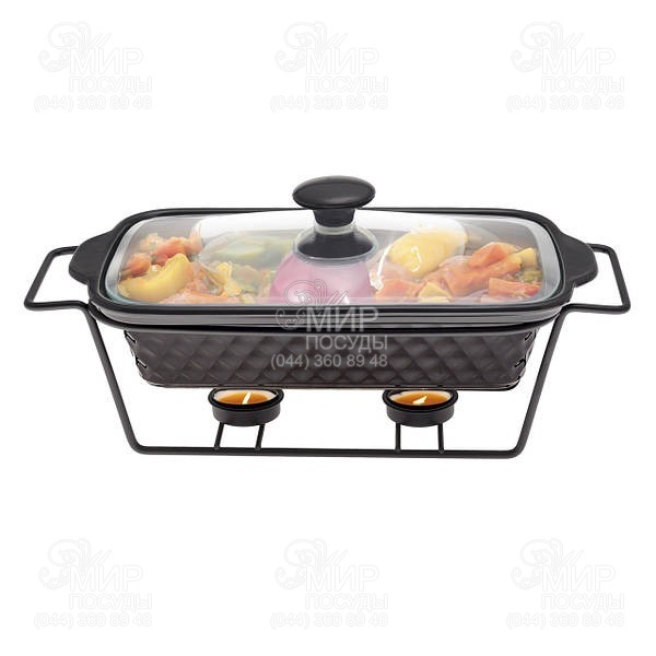 Керамический мармит Kamille – отличное устройство для подачи горячих вторых блюд. Изготовлен из высококачественных материалов с применением современных технологий производства. Керамическая форма с крышкой подходит для использования в духовых шкафах и микроволновках, а в комплекте с ней идет удобная металлическая подставка с подсвечником для подогрева блюд. Такой керамический мармит с подставкой обладает привлекательным внешним видом и очень удобен в использовании, благодаря чему он непременно украсит Ваш праздничный стол.