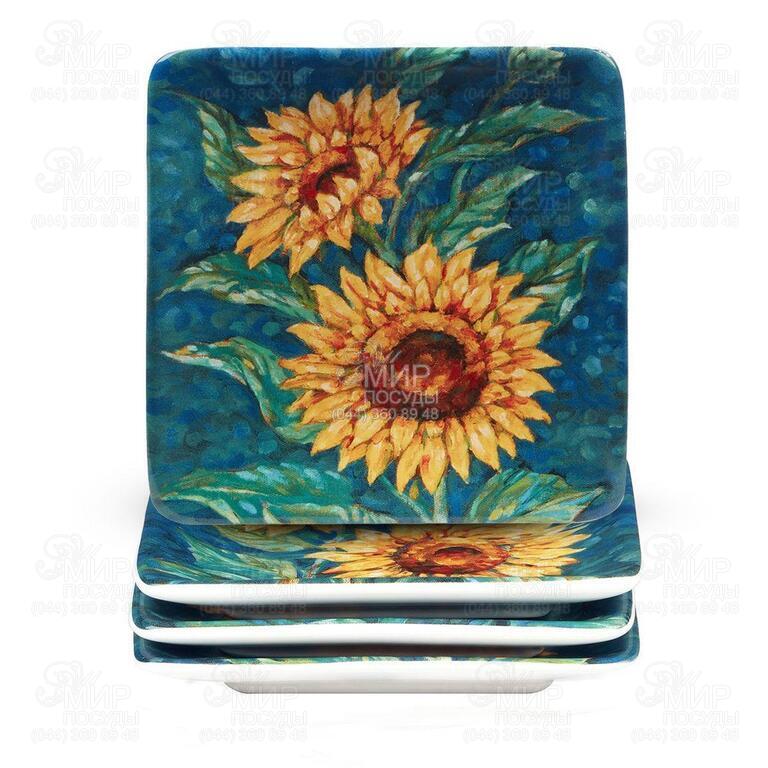 Мир посуды - Столовая посуда - Тарелки - Тарелки десертные - Набор тарелок десертных Золотистые Подсолнухи 15х15см 31451-set