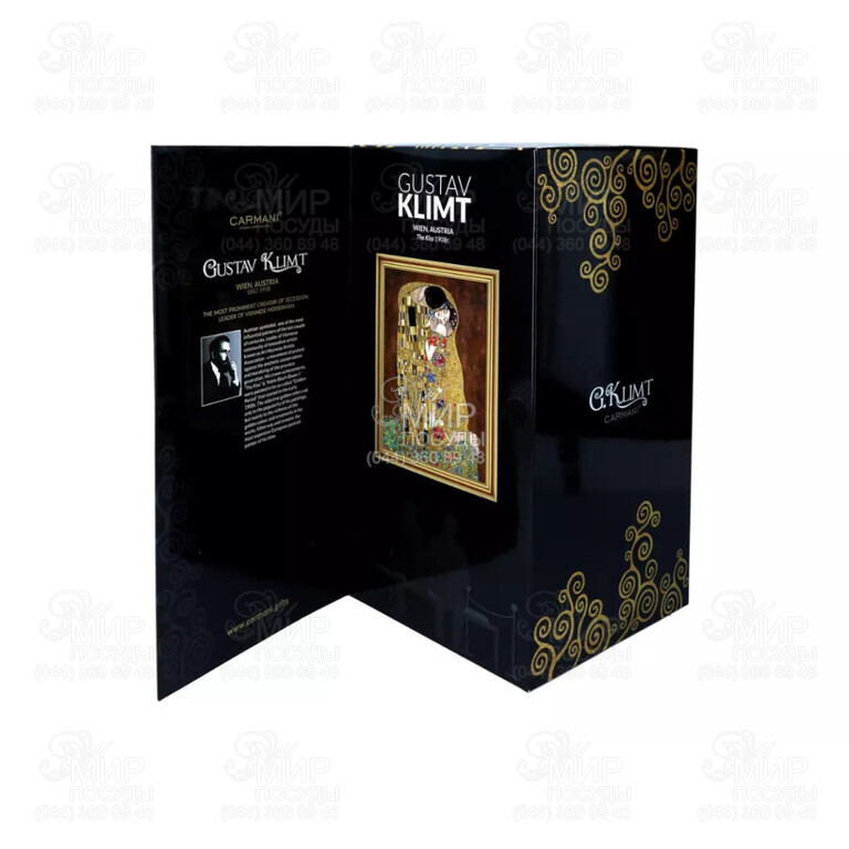 Емкость выполнена из прочного стекла и сочетает в себе изысканный дизайн и функциональность. Бокал украшен прекрасной репродукцией картины известного художника Г.Климта. Такая емкость придется по вкусу и коллекционерам и тем, кто предпочитает утонченность и изысканность.